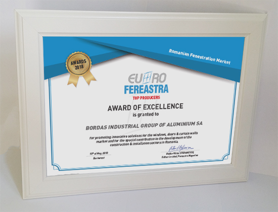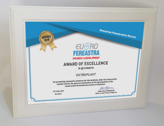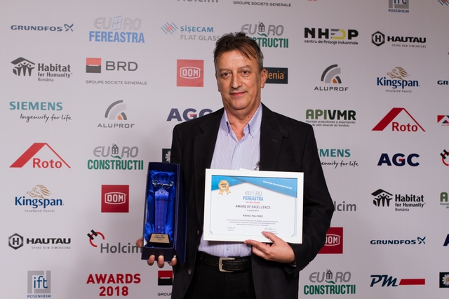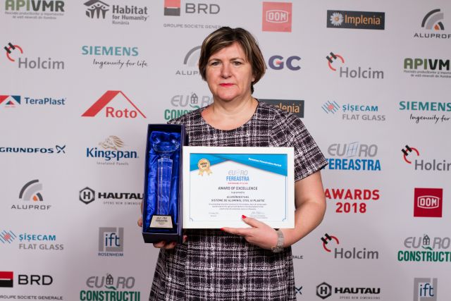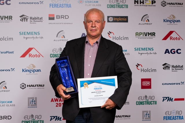 Trofeele si diplomele de excelenta au fost acordate pentru promovarea de solutii inovatoare in domeniul tamplariei termoizolante si contributia speciala adusa la dezvoltarea pietei de ferestre din Romania, in cadrul sectiunilor: