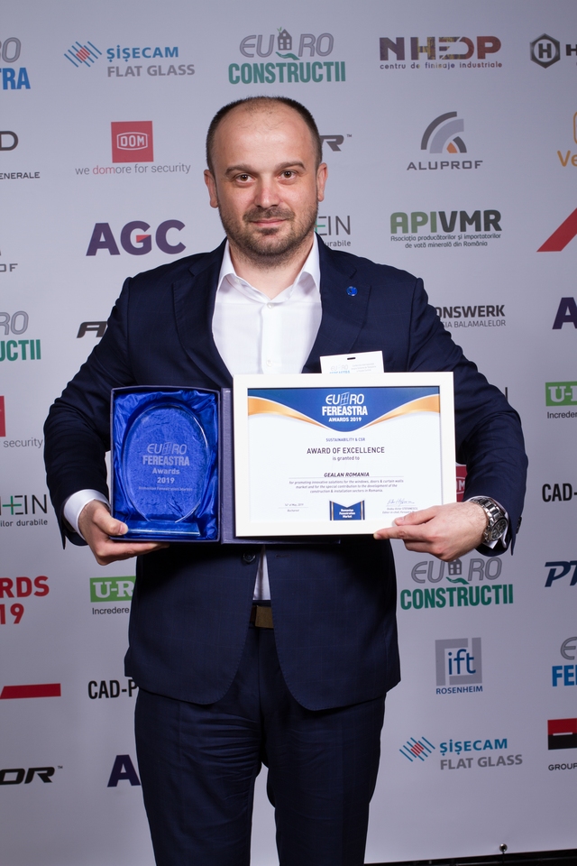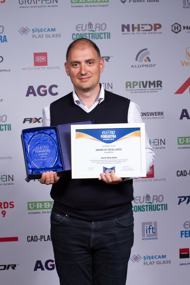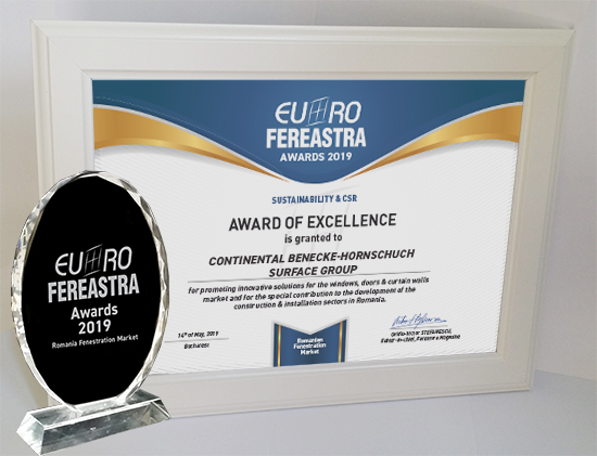 Trofeele şi diplomele de excelenţă au fost acordate pentru promovarea de soluţii inovatoare în domeniul tâmplăriei termoizolante şi contribuţia specială adusă la dezvoltarea pieţei de ferestre din România, în cadrul secţiunilor: