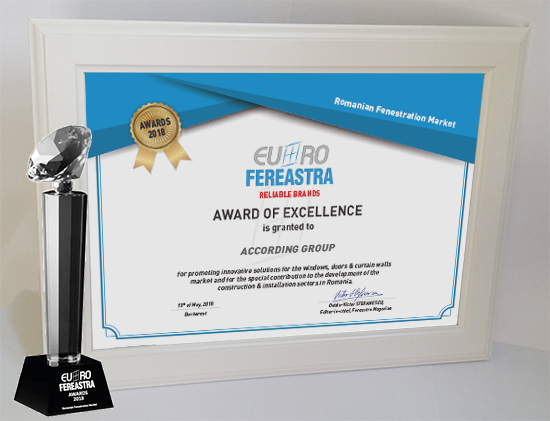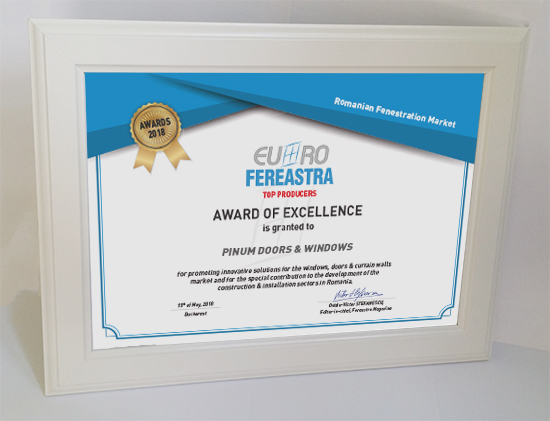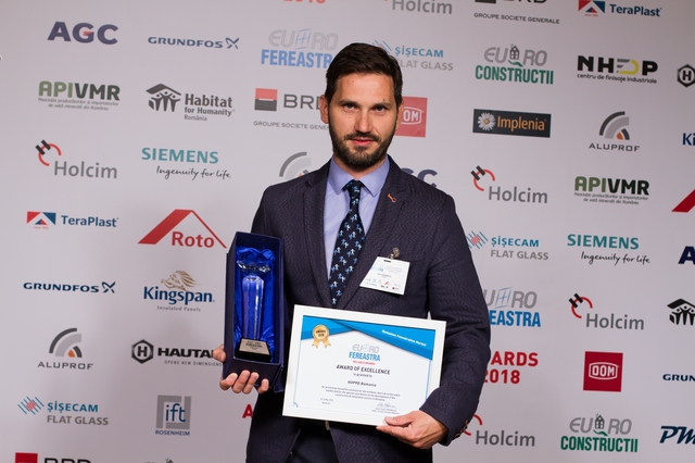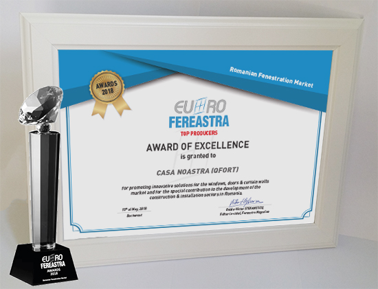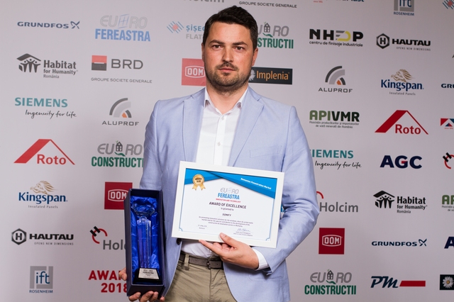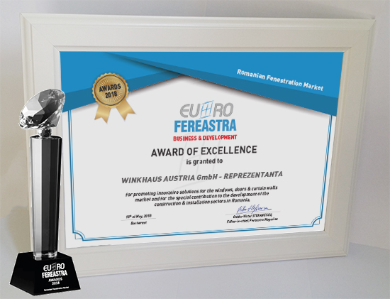 Trofeele si diplomele de excelenta au fost acordate pentru promovarea de solutii inovatoare in domeniul tamplariei termoizolante si contributia speciala adusa la dezvoltarea pietei de ferestre din Romania, in cadrul sectiunilor: