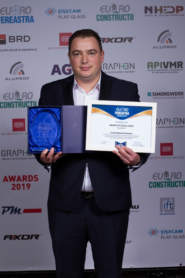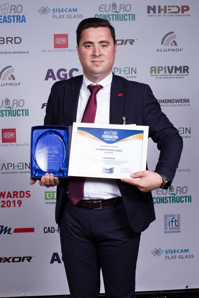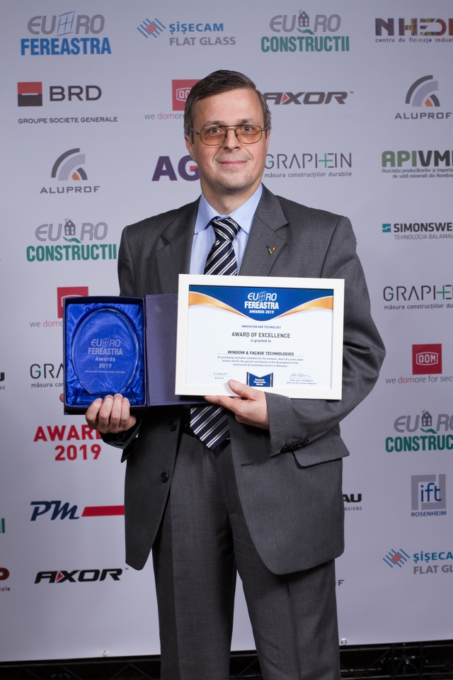 Trofeele şi diplomele de excelenţă au fost acordate pentru promovarea de soluţii inovatoare în domeniul tâmplăriei termoizolante şi contribuţia specială adusă la dezvoltarea pieţei de ferestre din România, în cadrul secţiunilor: